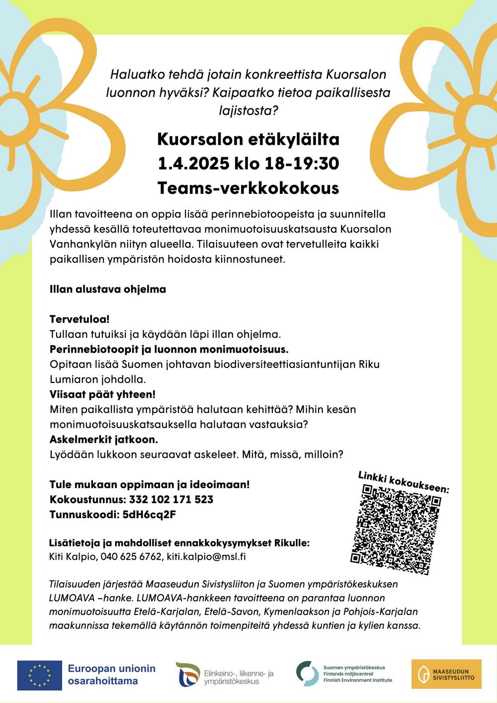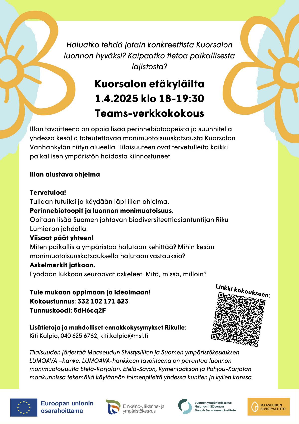 yhdessä kesällä toteutettavaa monimuotoisuuskatsausta Kuorsalon