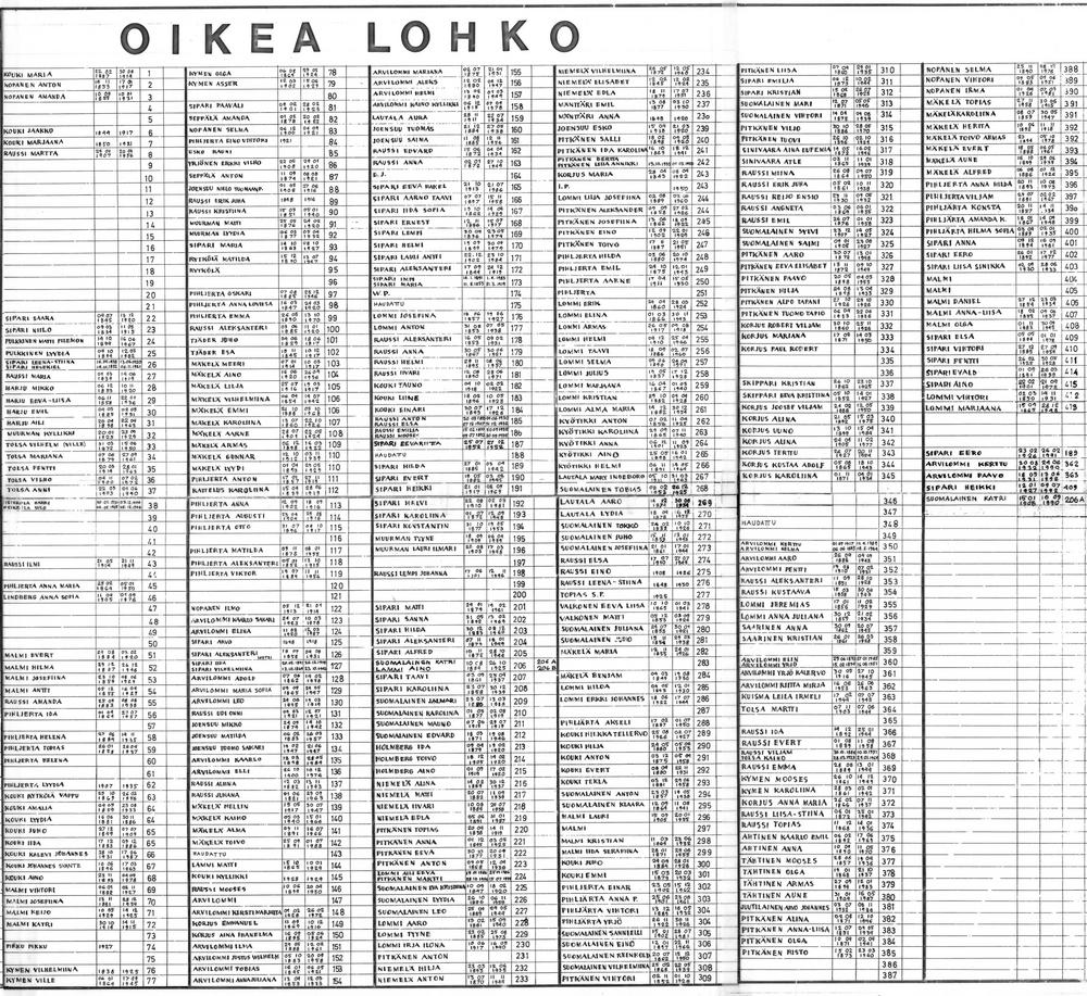 Ilmo Siparin laatima kirjamoniste hautuumaalle haudatuista henkilöistä vuodelta 1995. Luettelo löytyy painikkeesta alta.