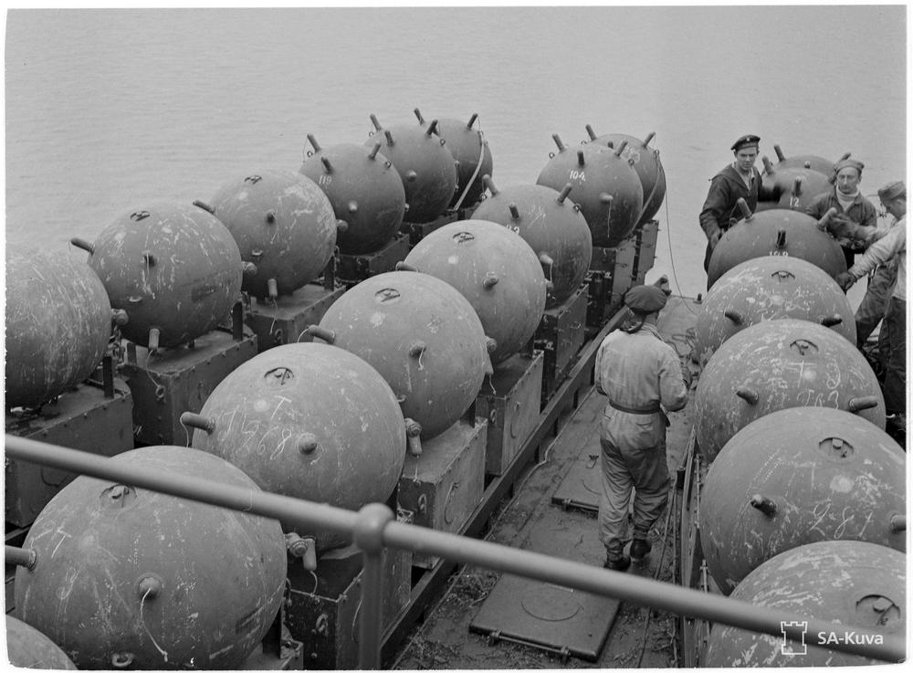 Merialueilla liikkuminen sisälsi alinomaisen vaaran, sillä Suomenlahteen oli laskettu 60 000 miinaa. Yksi sarvimiina ajautui kerran Leerviikin rantaan, jossa Uuno Korjus ja Kaarlo Arvilommi yrittivät tuhota sen ampumalla. Merimiina ei kuitenkaan räjähtänyt ja niin isännät hinasivat sen Sokeritoppakiven taakse Saunasaaren rantaan, missä meripioneerit kävivät sen hajottamassa.