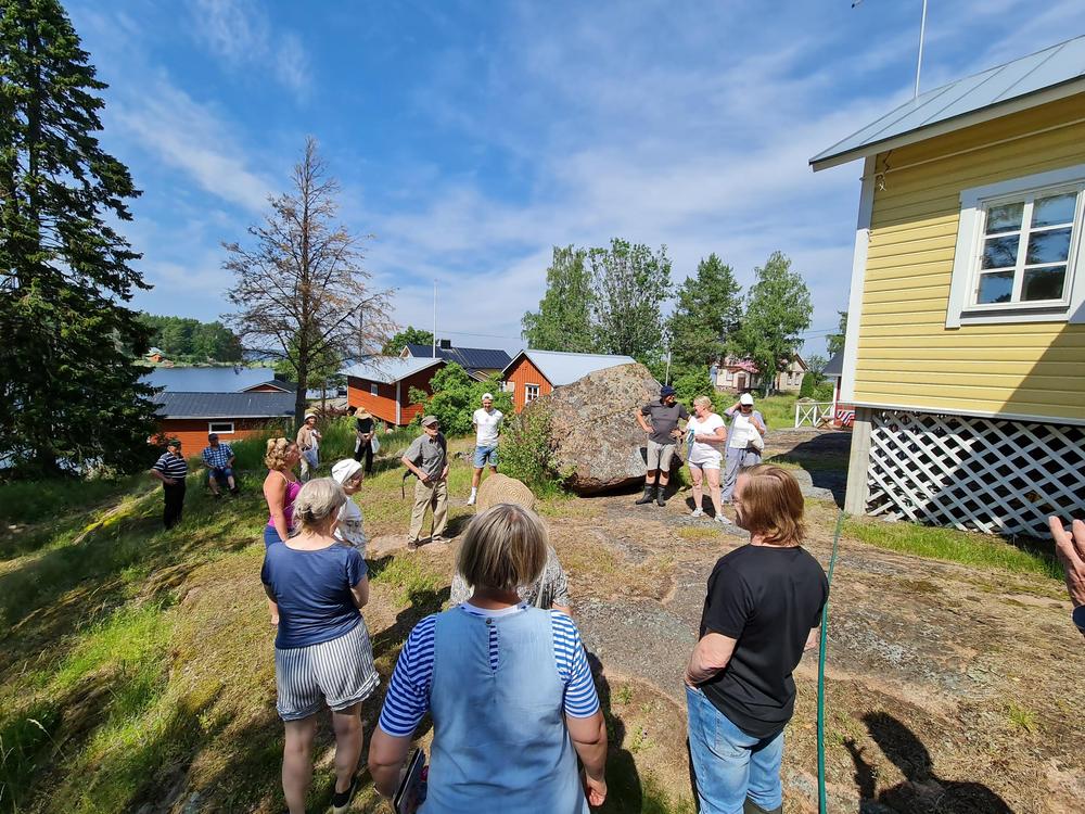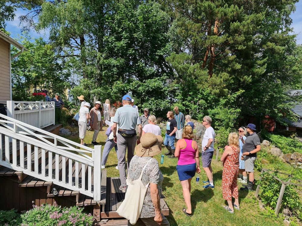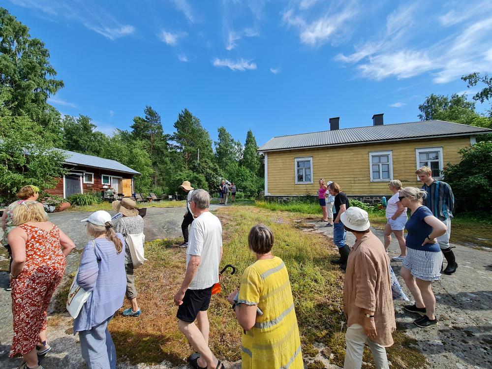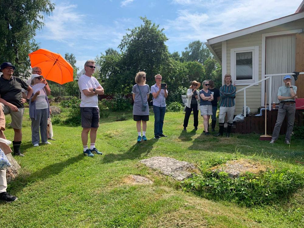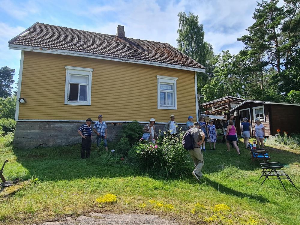 Tämänkertaisella kyläkävelyllä keskikylällä tutustuttiin vanhojen talojen, pihojen ja niiden entisten ja nykyisten asukkaiden vaiheisiin helteisessä säässä 30 hengen porukalla. Oppaanamme oli tälläkin kertaa "kävelevä tietokirja", Kuorsalo-Seuran kunniajäsen Tuomo Silenti, joka tarkoilla nimi- ja vuosilukutiedoillaan antoi osallistujille jälleen unohtumattoman kokemuksen ja matkan 1800-luvulta nykypäivään. Alustavasti matka jatkuu ensi vuonna Itäpuolen suuntaan. Ohessa kuvia kierrokselta.