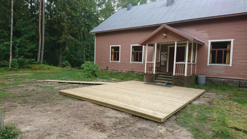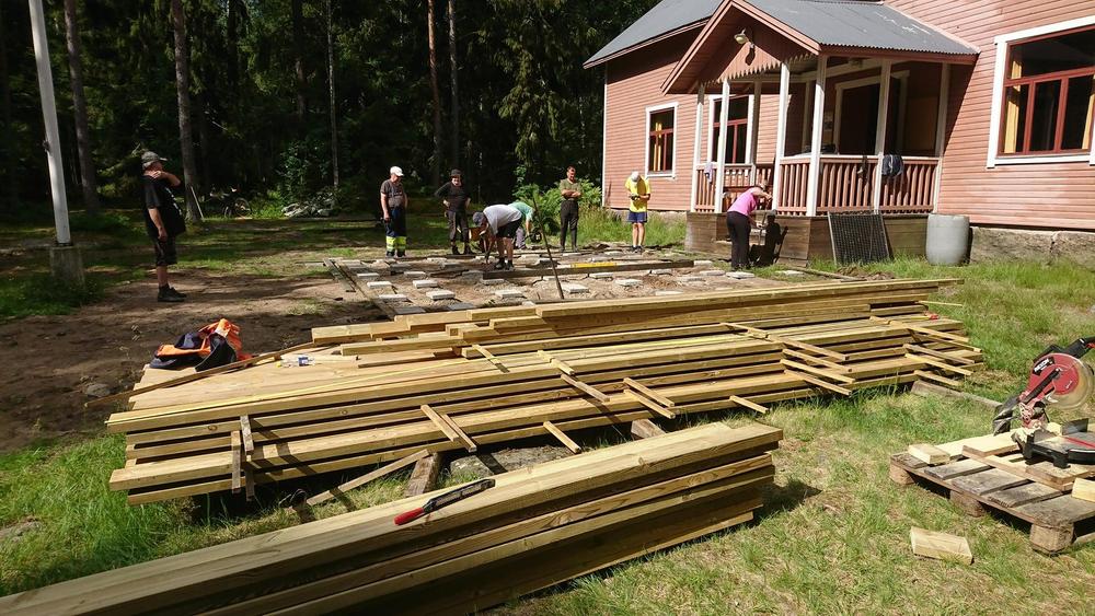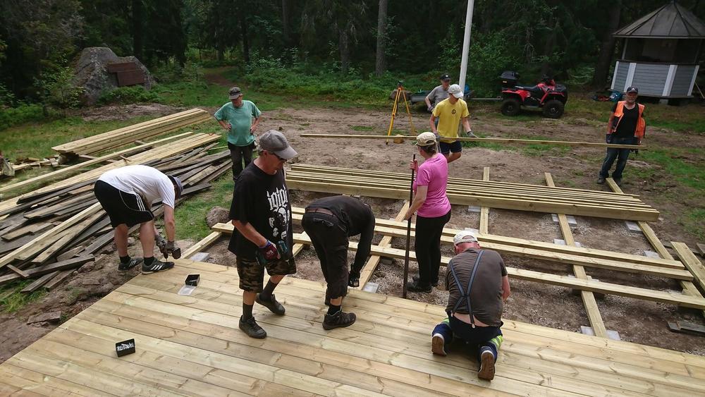 Ahkeralla talkooporukalla terassimestari Matti Siparin johdolla Seurantalon pihan terassi valmistui yhdessä päivässä! Viimeisen päälle vaaitettu ja viimeistelty taso kestää toivottavasti taas ainakin seuraavat 30 vuotta.